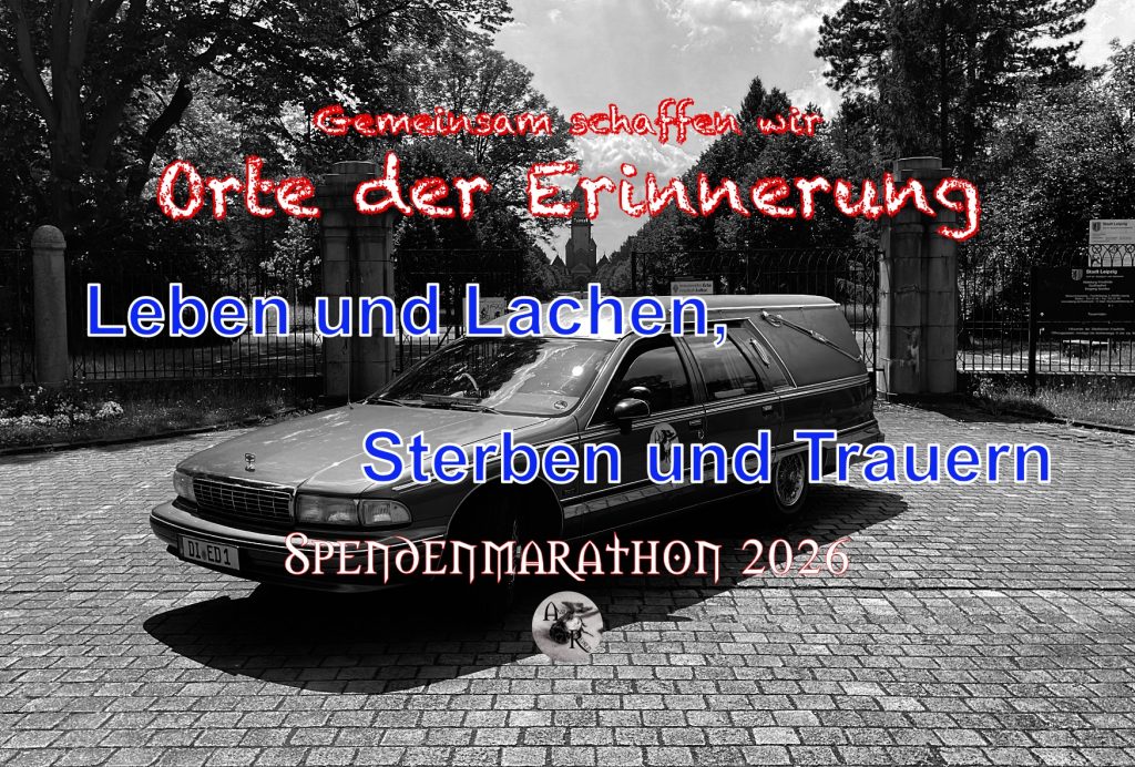 Dann klick einfach auf das Bild vom Spendenmarathon 2026 rechts oben, dann kommst Du direkt zu betterplace oder du bist am Pfingstsamstag in Leipzig – dann komm doch zu Azrael und wirf Deinen Beitrag in die Spendenurne #sagemeinendank